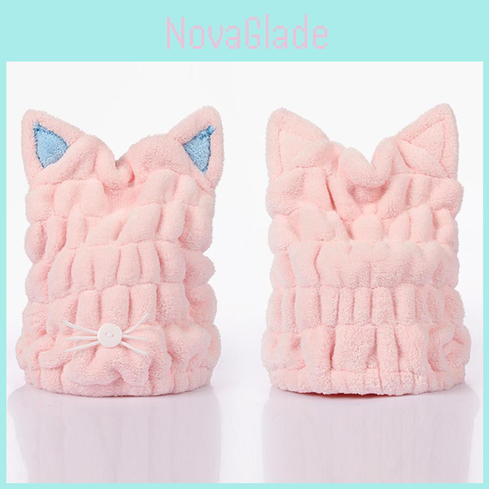 Adjustable Hair Drying Cap Hair Wrap Towel With Adorable Cat Ears For Cozy Baths**
