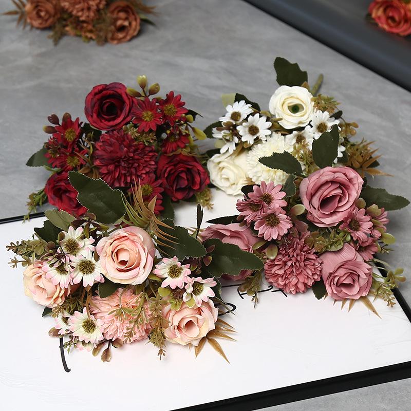 European Style Silk Rose Artificial Flower Bouquet for Home Décor and Weddings