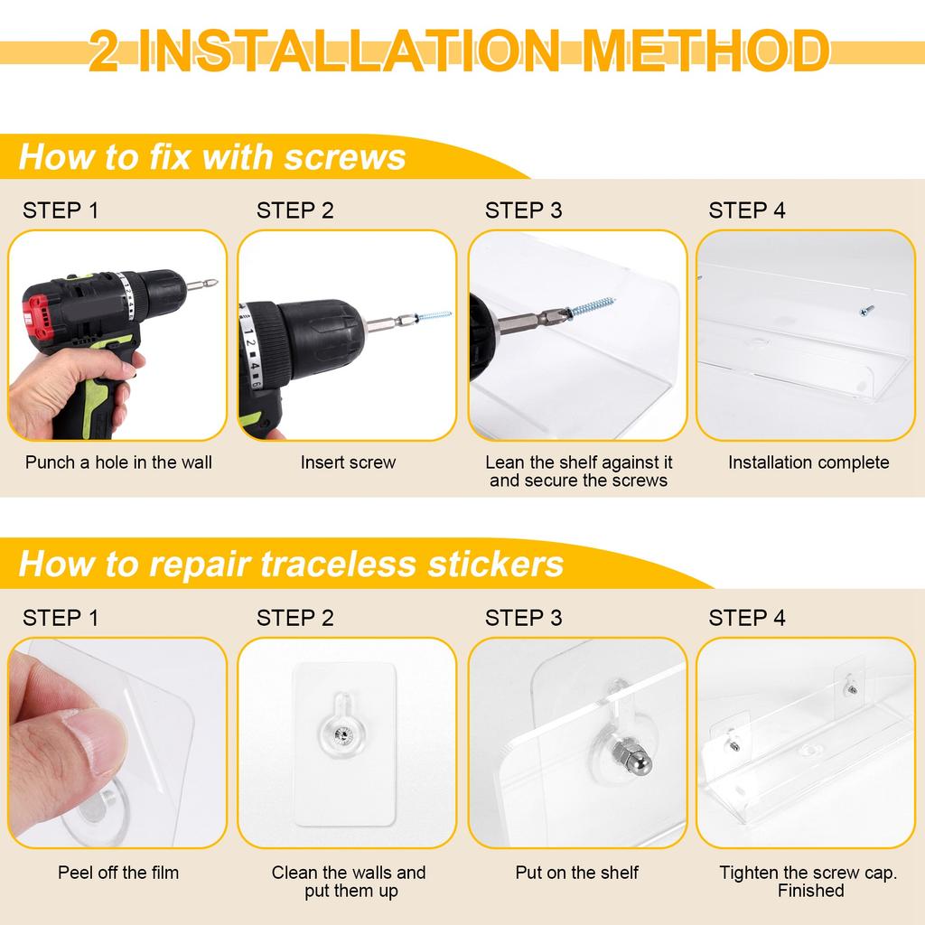 2PCS Clear Acrylic Wall Shelf Floating Book Shelves For Wall, Display Wall Shelves For Bathroom, Bedroom, Kitchen
