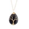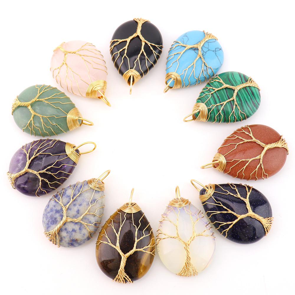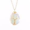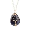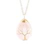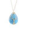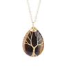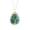 Natural Crystal Water Drop Leaf & Tree of Life Pendant Necklace for Women, Alloy Woven Jewelry Accessory N749