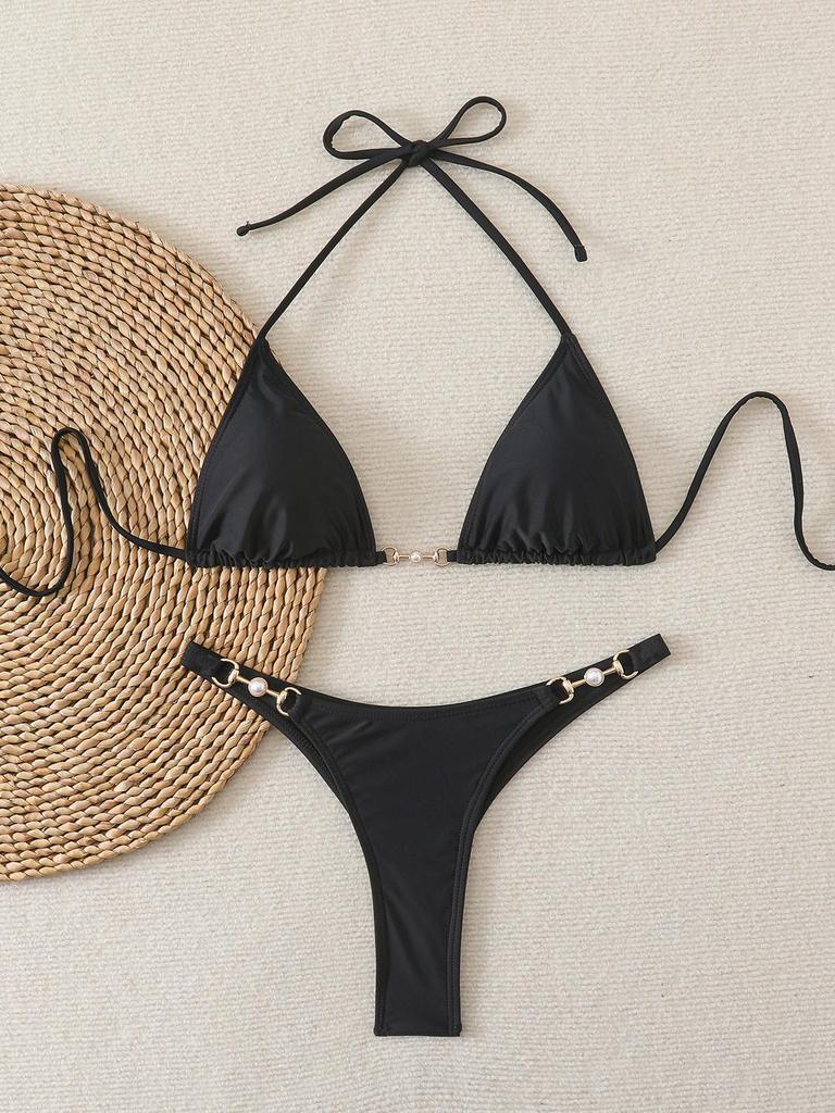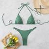 European & American Women's Solid Color Lace-Up Halter Triangle Bikini - Sexy Two-Piece Swimsuit