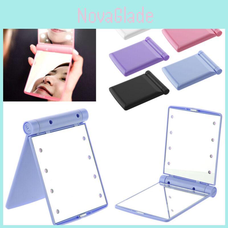 Makeup Cosmetic Folding Portable Compact Pocket Mirror With 8 Led Lights Lamps For Perfect Illumination