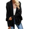 The elastic and cuffed sleeves add a touch of detail to the open, casual, and loose cardigan style.