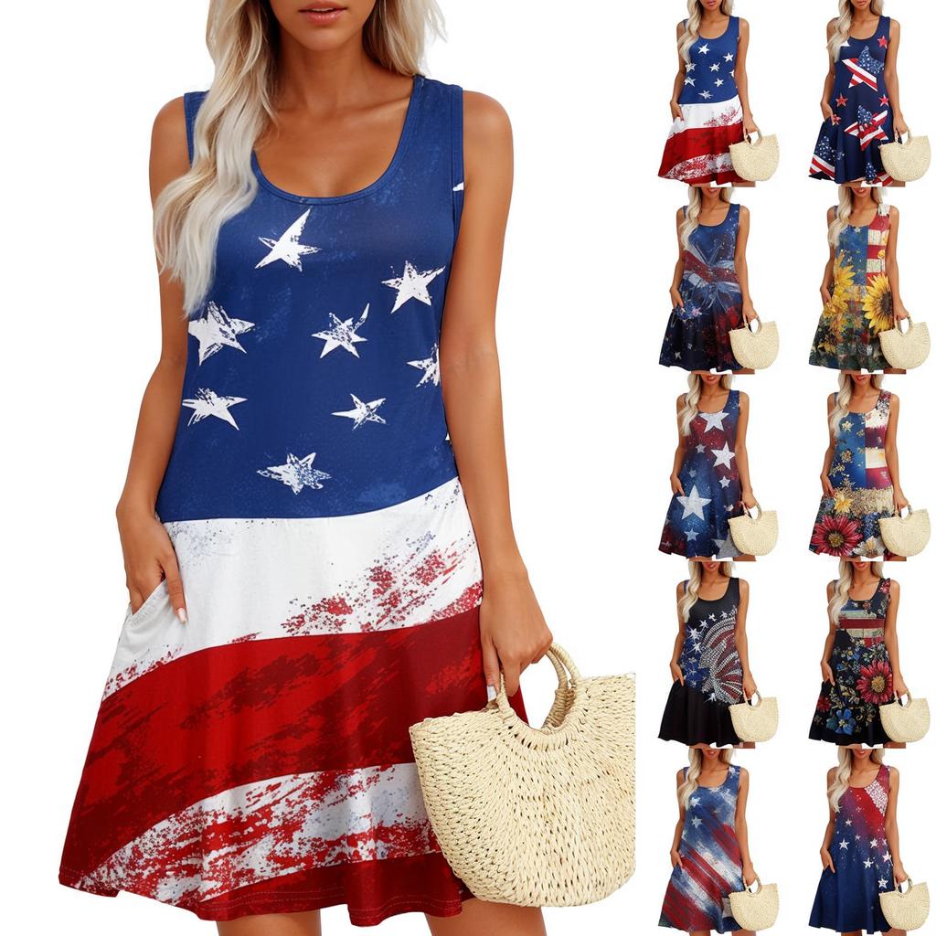 Women's Fashionable Casual Independence Day Print Dress