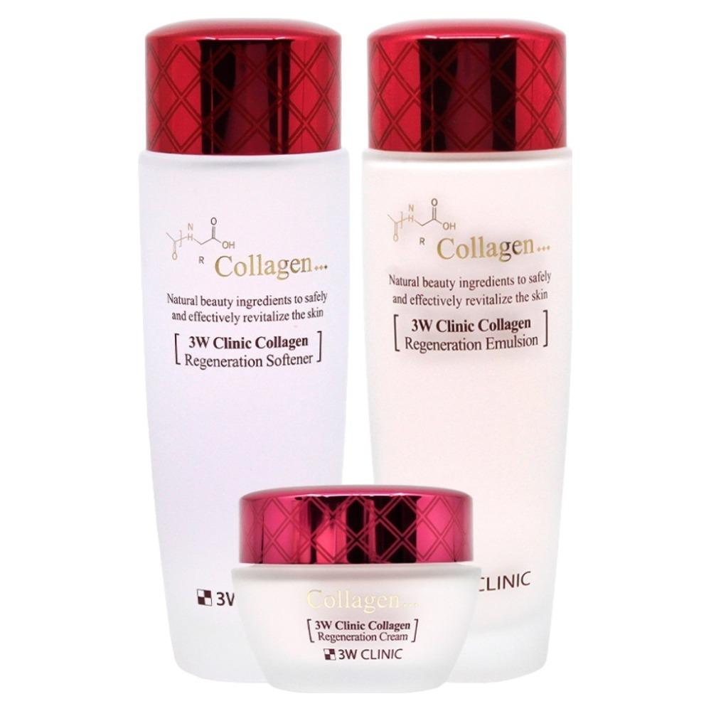 Revitalize your complexion with the 3W Clinic Collagen Skin Care 3-Piece Set, a complete daily regimen designed to restore your skin's youthful bounce. Infused with Hydrolyzed Marine Collagen and nourishing botanical extracts, this essential trio deeply hydrates, improves elasticity, and helps smooth the appearance of fine lines and wrinkles. The lightweight Softener and Emulsion balance the skin’s moisture levels, while the rich Regeneration Cream locks in hydration for a firm, radiant, and healthy-looking glow. Perfect for all skin types, especially those seeking effective, everyday anti-aging care.
