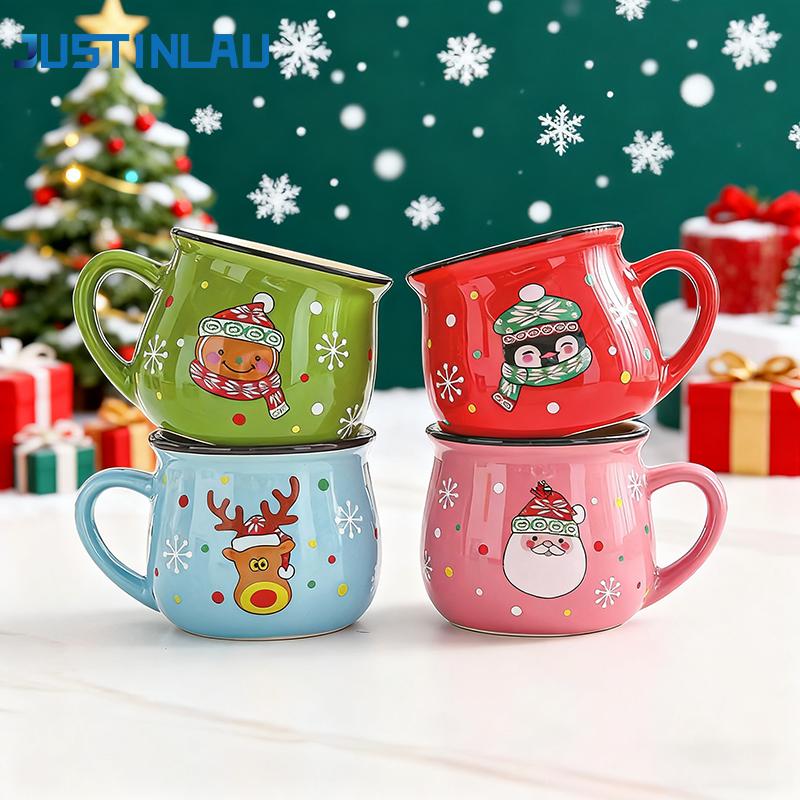 150ML/350ML Christmas Mugs Ceramic Cute Santa Elk Penguin Mousse Cup Coffee Cup for Office Home Milk Coffee Tea Cups Xmas Gifts