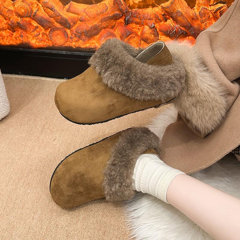 Winter Two Wear Slippers Scrub Fleece Round Toe Deep Mouth Plush Platform Warm Cotton Shoes
