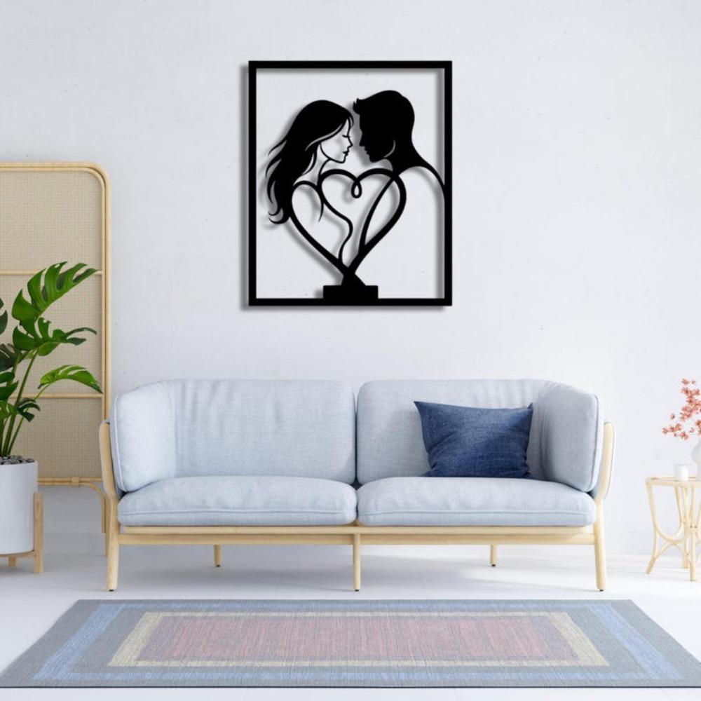 Couple Heart Metal Wall Art Romantic Love Decor Modern Silhouette Design
