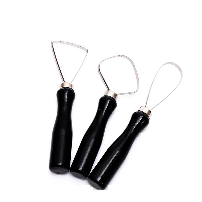 Ceramic Serrated Ring Repair Tool Three-piece Wooden Handle Stainless Steel Round Head Clay Sculpture Texture Pottery Supplies