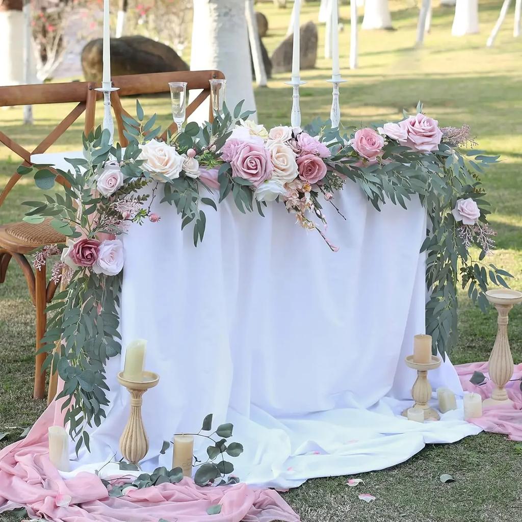 2.7M Artificial Wedding Eucalyptus Garland Runner with Rose Flowers Rustic Floral Table Centerpieces Boho Wed Decoration