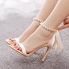 Summer New Brand Ankle Strap Sandal String Bead PU 10.5CM Thin Heels Buckle Strap Wedding Dress Women's Shoes Champagne