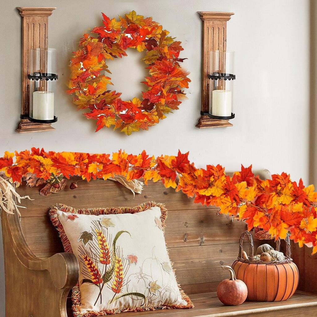 Artificial Fall Leaves Garlands 4Pcs Autumn Fall Thanksgiving Maple Leaves Rattan Halloween Seasonal Harvest Decoration