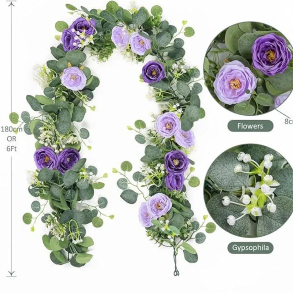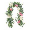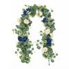 1pcs Artificial Rattan 180cm/6ft Artificial Eucalyptus Garland With Navy Blue White Roses For Weddings Festive Party Decoration