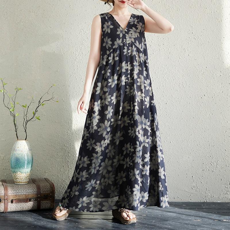 Sleeveless Plus Size Cotton Vintage Floral New In Dresses for Women Casual Loose Long Summer Dress
