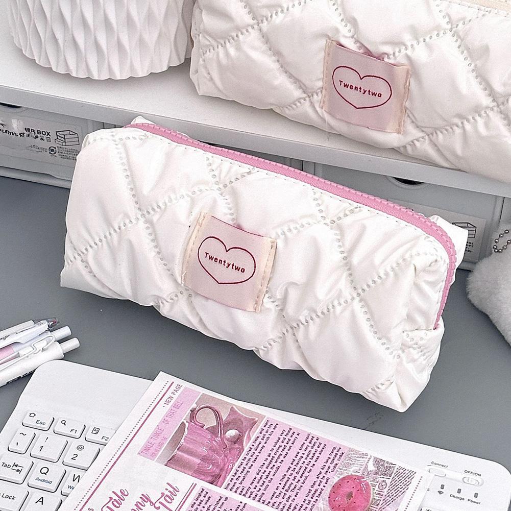Large Capacity Milk White Butterfly Bow Pencil Case Cute Layered Storage Pencil Bags Portable Students Stationery Storage Bag