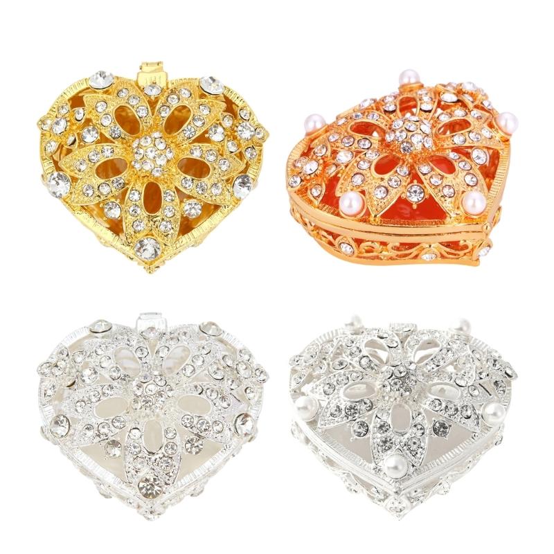 This heart shaped jewelry box features pearls accent and diamonds like embellishments, showcasing European elegant weddings, anniversaries, and romance occasions to elevating your jewelry presentation.