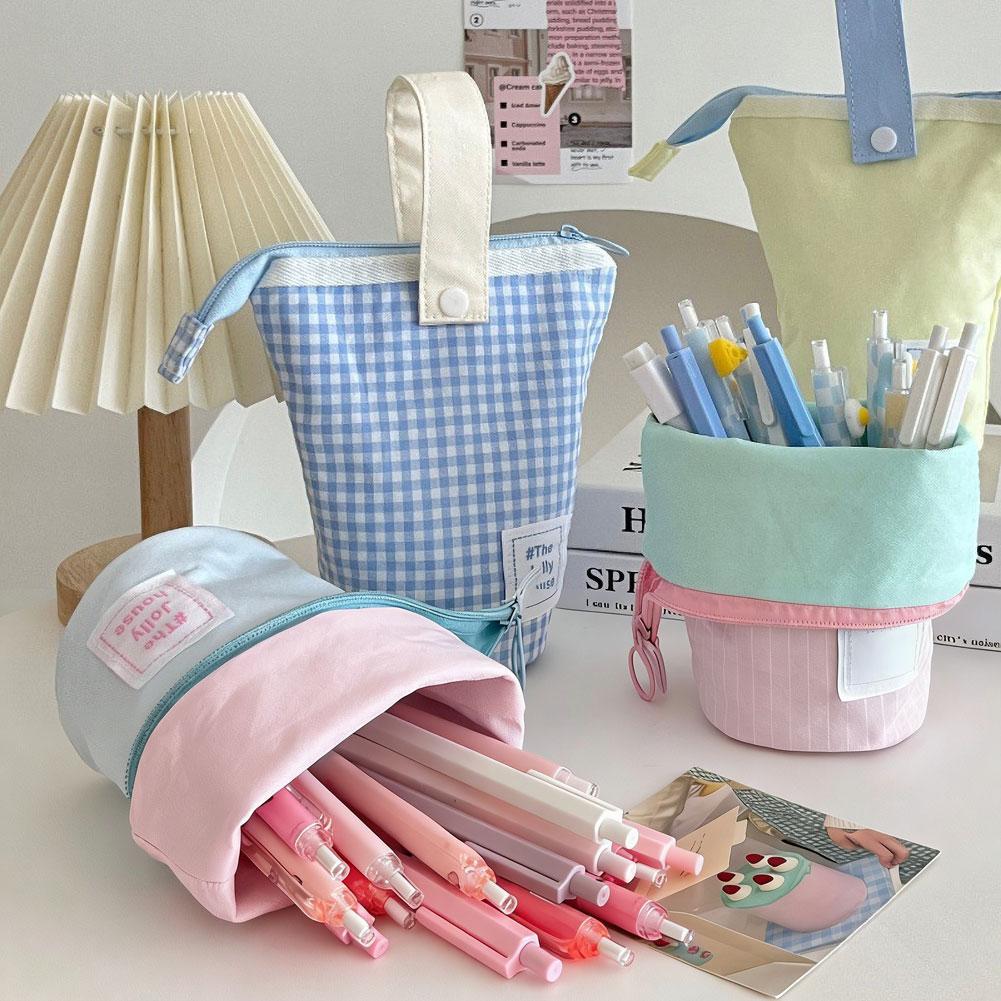 Large Capacity Pencil Case, Zipper Fabric Desk Organizer Stationery Storage Bag Pen Holder Office School Supplies Students Gift