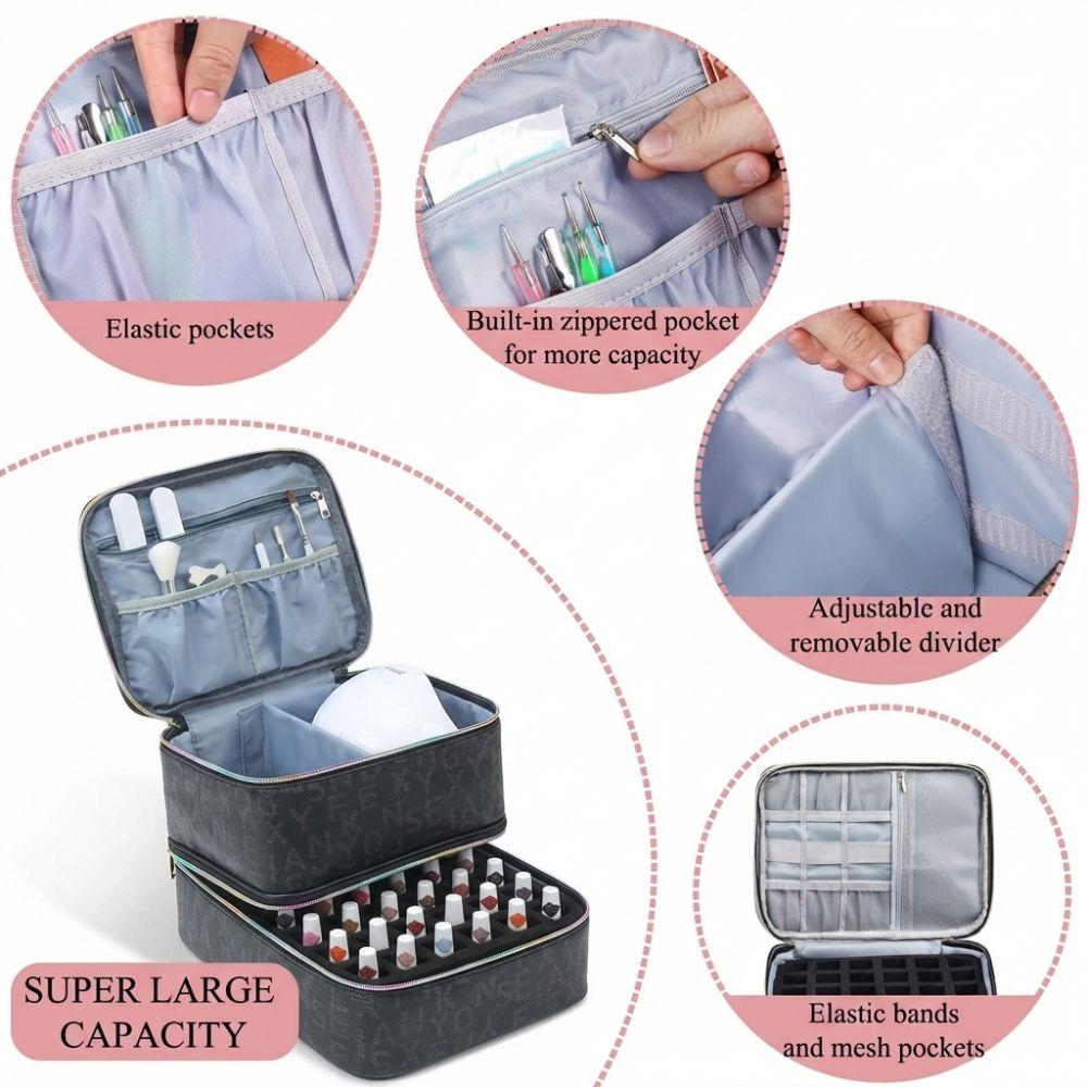 Double Layer Nail Polish Organizer Bag Large Capacity 30 Compartment Nail Care Kit Bag Handheld Essential Oil Storage Bag