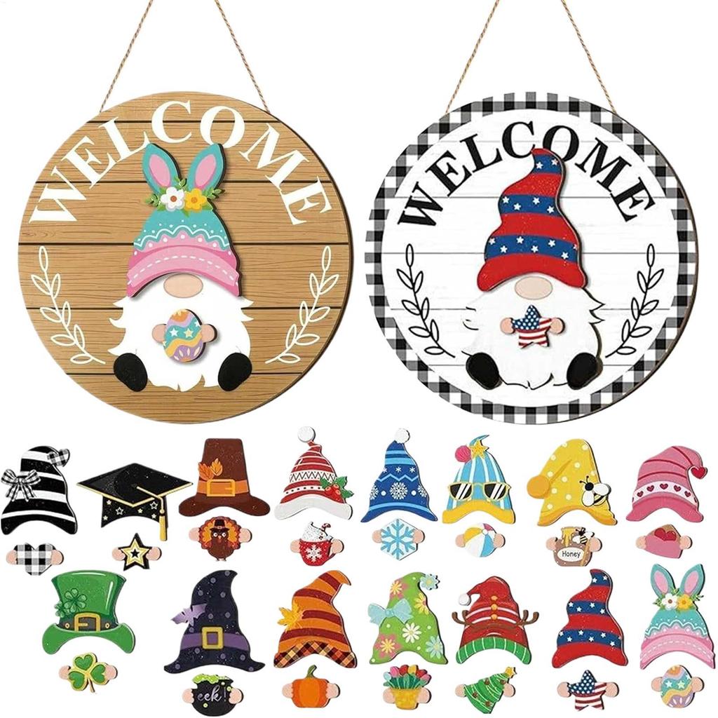 Halloween Gnome Door Sign with Magnetic Pieces - Welcome Sign Decor for Home Front Door, Porch, Yard, Garden, Indoor Party Decor
