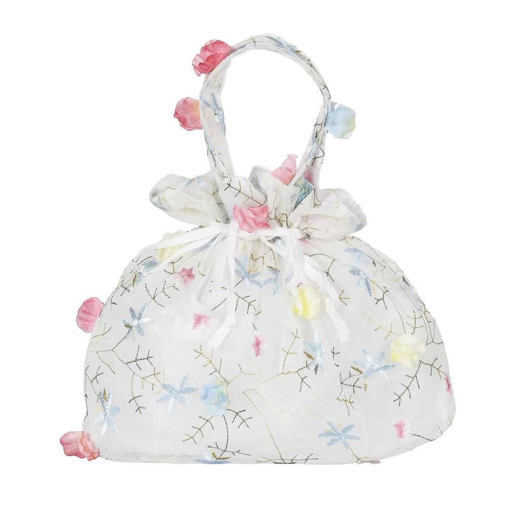 Fukuske Flower Pattern Drawstring Tulle Fukuske . (Dot Fukuske)3D Bag, Material,