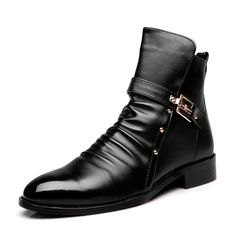 High Quality Business Casual Shoes Luxury Men's Chelsea Boots Fashion Pointed Toe Men's Boots Retro Leather Men Motorcycle Boots