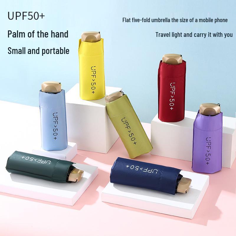 Black Vinyl UV Protection Mini Folding Umbrella - Portable, Full Blackout, Sun Shade Gift.
