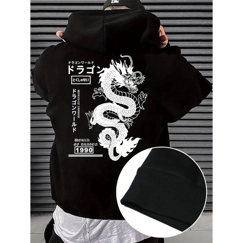 Hoodie with Geometric Dragon Print Casual Pullover Sweatshirt for Couples Casual Long Sleeve Pullover with Pockets Comfortable