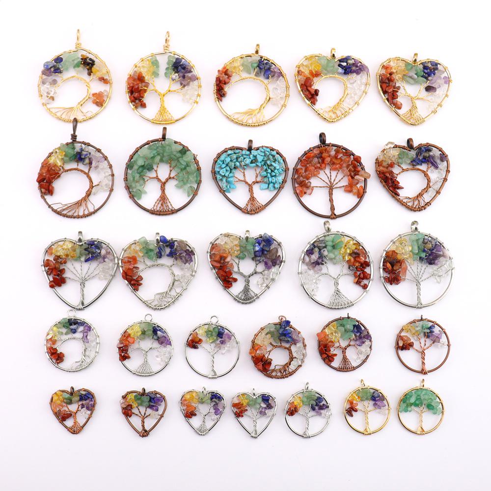 Seven-Color Natural Crystal Tree of Life Necklace Pendant with Crushed Stone, N737
