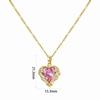 18K Gold Heart Series Copper Necklace with 3-Color Zirconia and Water Ripple Clavicle Chain