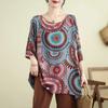 Summer Loose Women's Printed Round Neck Top Short Sleeve Ethnic Style