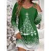 Women's Christmas Snowflake & Tree Print Casual Long Sleeve Dress