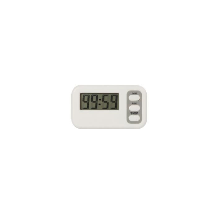 Chronomètre / Compteur - Compteur à rebours avec alarme - 99 min 59 s - Clip, aimant et support - Blanc