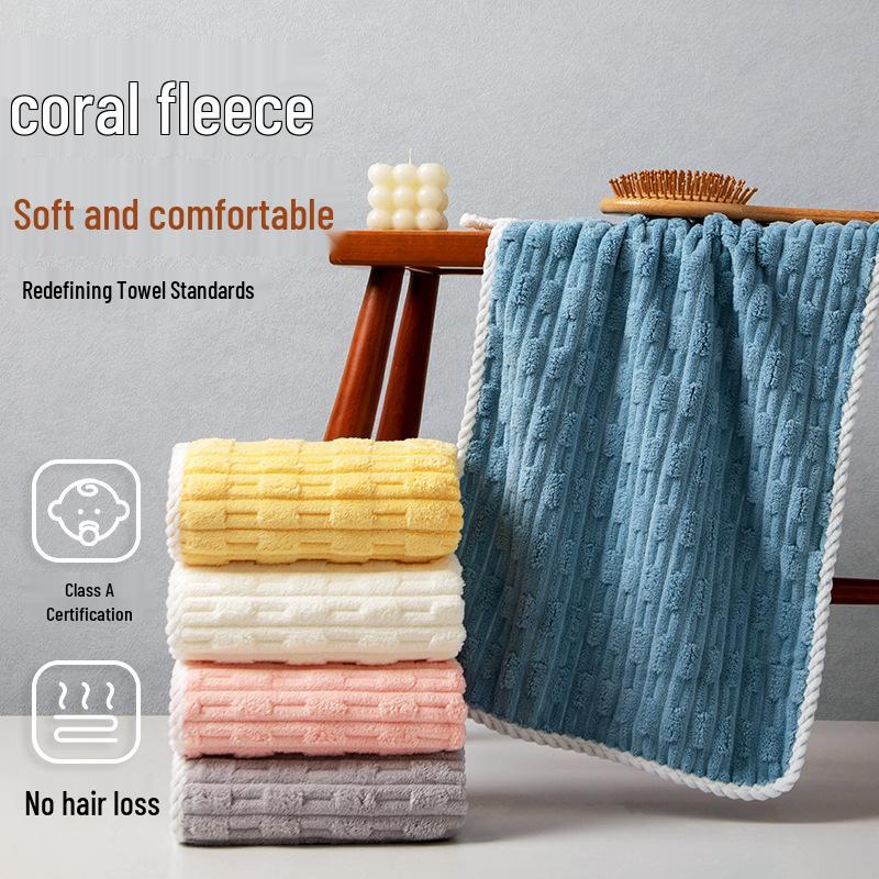 Thickened Enlarged Coral Fleece Towel - Highly Absorbent, Lint-Free, Quick-Drying, for Adults, Perfect for Home Use: Hands, Face, Hair