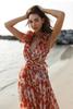 This elegant dress is designed to enhance your figure with its slimming silhouette and flattering V-neckline. Adorned with a charming floral pattern, this dress is perfect for holiday occasions or any special event. The ruffle detailing adds a touch of femininity, while the stretch polyester material ensures comfort and ease of movement. Made from high-quality polyester, this dress is both stylish and durable, making it a versatile addition to any wardrobe.