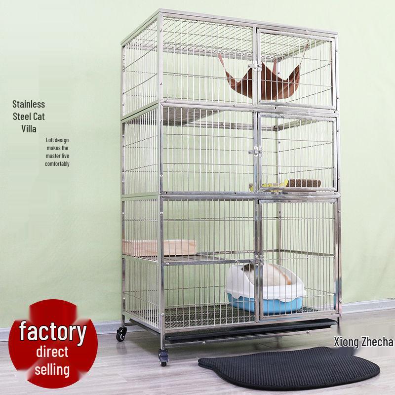 Stainless Steel Multi-Layer Indoor Cat Cage and Villa