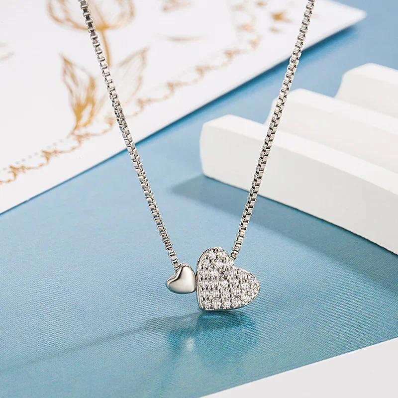 925 Sterling Silver Luxury Crystal Love Heart Pendant Necklaces for Women Silver 925 Female Chokers Jewelry Collares Para Mujer
