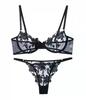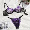 Sexy Lingerie Embroidered Flower Women's Perspective Mesh Bra Sexy Bra Panty Set