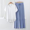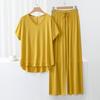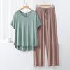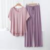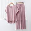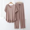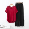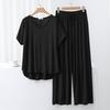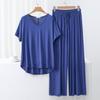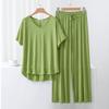Summer Modal Homewear 2 Piece V-Neck Short Sleeve Tshirt and Wide Leg Pant Ankle Length Loose Sleepwear Set Comfort Pajama Sets