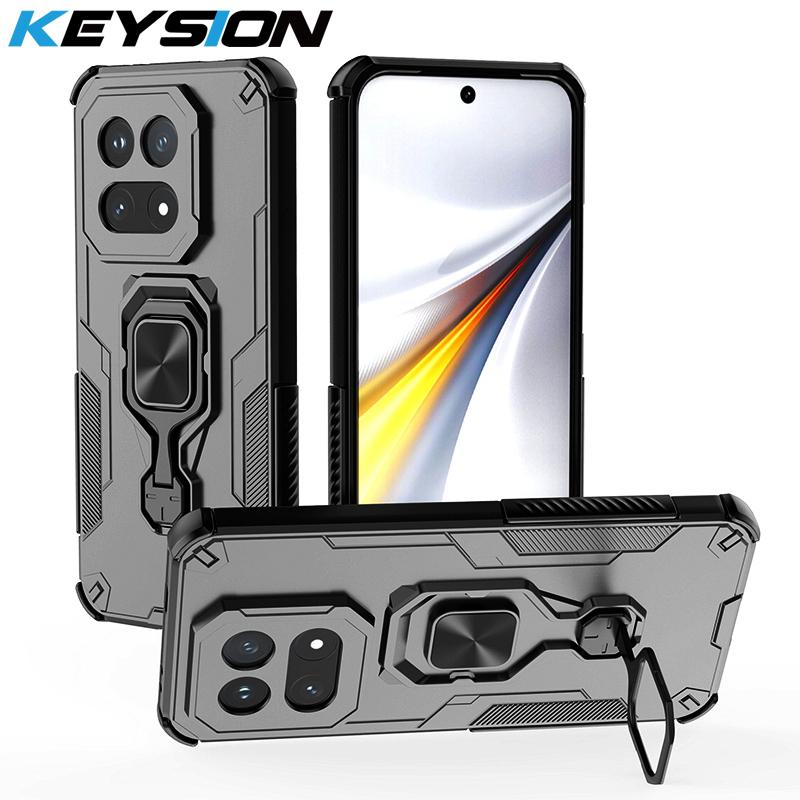 KEYSION Shockproof Armor Case for IQOO 15 5G Soft Silicone+PC Upright Metal Live Ring Stand Phone Back Cover for IQOO 15