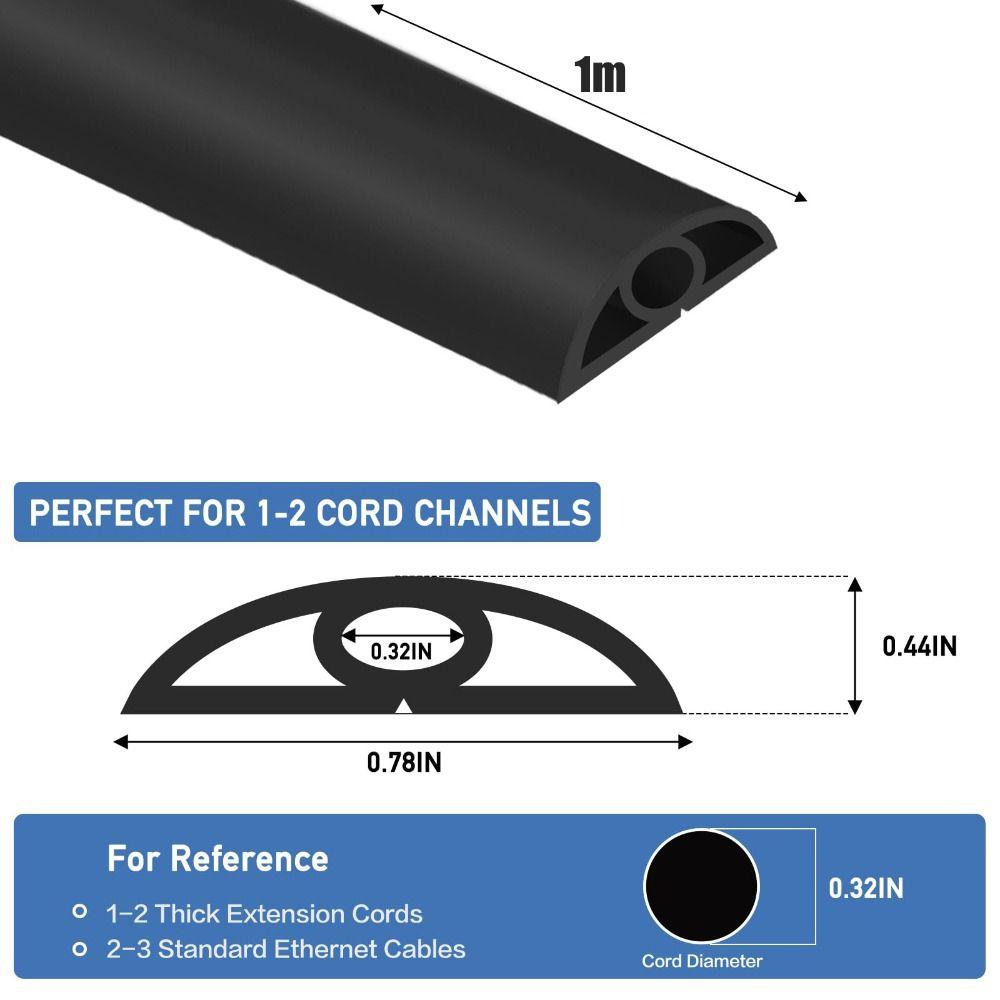 Professional Self Adhesive Floor Cord Cover 1m Trimmable Cable Management PVC Low Profile Power Cord Protector Home Office
