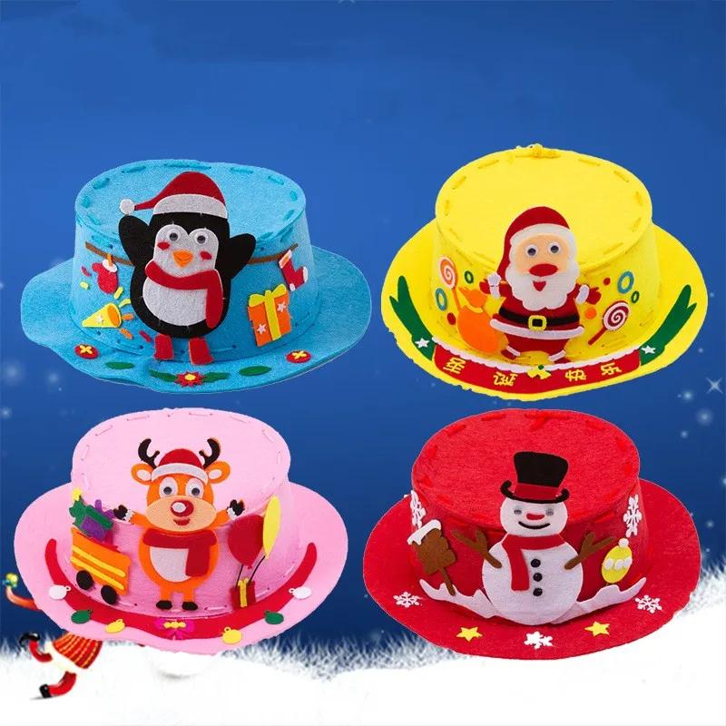 DIY Christmas Cap Adornment Children Handmade Non-Woven Hat Craft Kits Toys Ideal for Kids Kindergarten Learning-Focused Playthings Xmas Presents