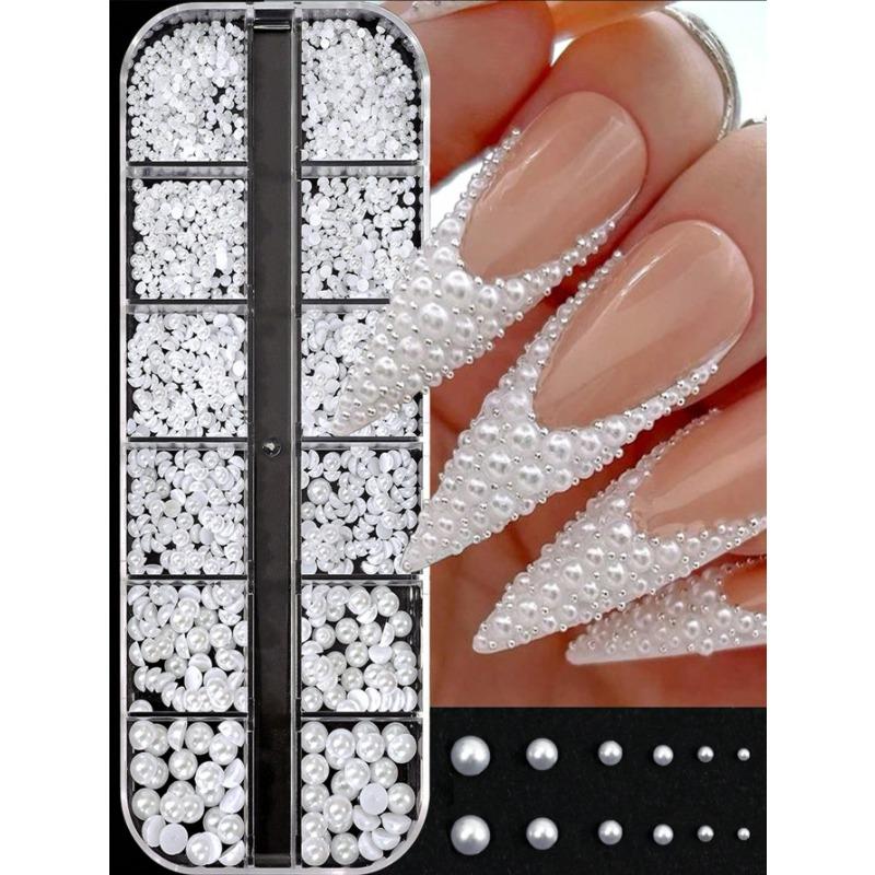12 Grids 3D Semi-Circle White Simulation Pearl Nail Art Decorations, Semi-Circle Pearl Gems, DIY Nail Art Decor, Suitable For Home DIY Nail Art