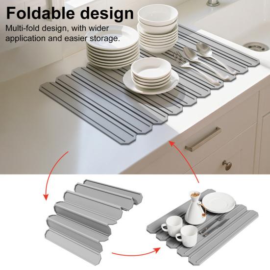 Quick-Drying Silicone Surface Keeps Counters Clean: Crafted from high-quality silicone, the mat promotes rapid water evaporation to maintain dry and tidy countertops. It effectively holds dishes, cups, and kitchen tools after washing, minimizing water stains and moisture buildup that can lead to mold or damage on surfaces.