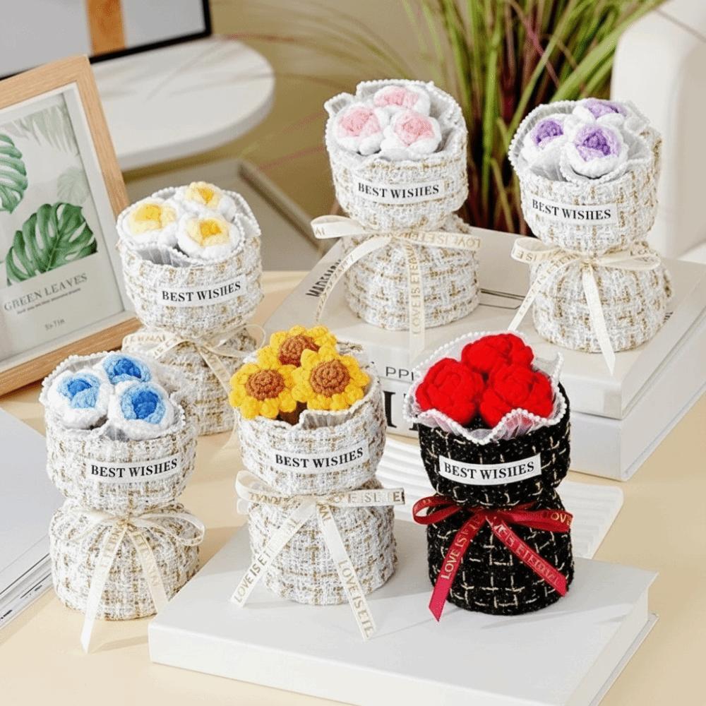 Creative Graduation Gift Crochet Flowers Bouquet Handmade Home Decor Rose Flowers Bouquet Mini Puff Flower Bouquet Mothers' Day
