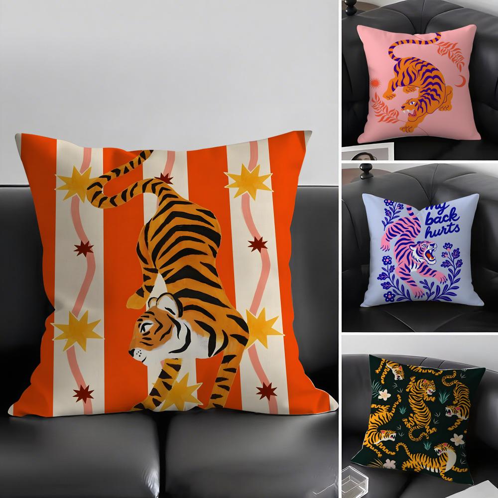 Animal Style Tiger Fashion Cushion Cover Pillowcase Ultra Soft Skin Friendly Fabric Cloud Like Comfort Concealed Zipper