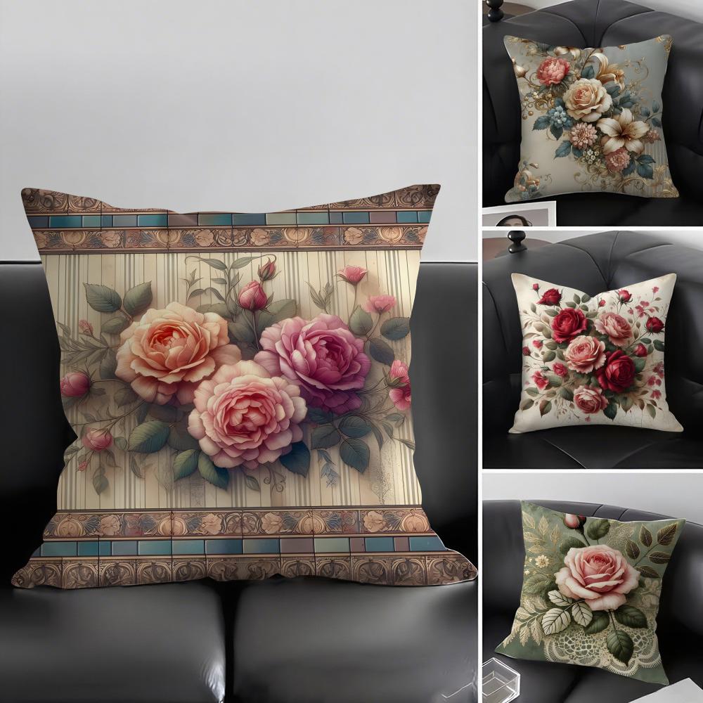 Rose Elegant Cushion Cover Pillowcase Ultra Soft Skin Friendly Fabric Cloud Like Comfort Concealed Zipper