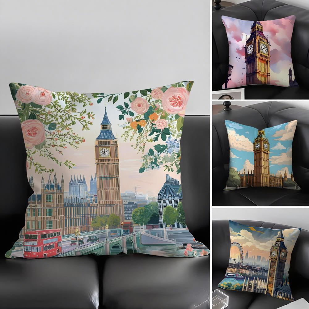 London Fashion Cushion Cover Pillowcase Ultra Soft Skin Friendly Fabric Cloud Like Comfort Concealed Zipper