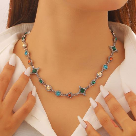 Colorful Faux Gem Necklace Women Retro Necklace Bracelet Sparkling Rhinestone Necklace for Jewelry Gift Parties Dating Weddings