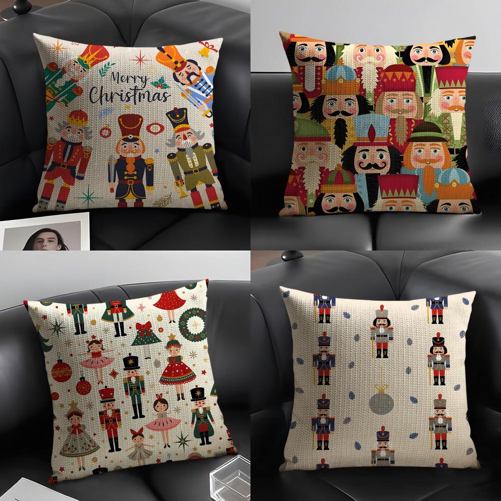 Nutcracker Soldier Christmas Cushion Cover Natural Linen Organic Fabric DoubleSided Printing Sofa Home Decor Gift Pillow Case