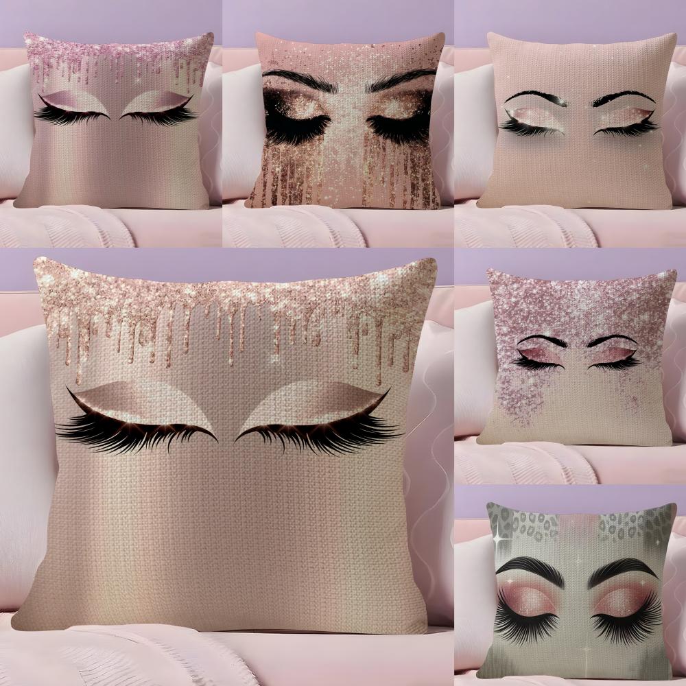 Makeup Eyelash INS Cushion Cover Natural Linen Pillow Case DoubleSided Print Decorative Sofa Pillowcase Home Decor Gift